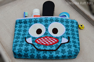 Dieses süße Täschen habe ich gestern für meinen Sohn gemacht. Er fährt bald auf Klassenfahrt und braucht dafür ein Täschen für seine Badutensilien. Das Täschen ist nach eigenem Schnitt entstanden und ist innen auch mit dem gewachsten Sternenstoff gefüttert, damit ich es komplett sauber machen kann.